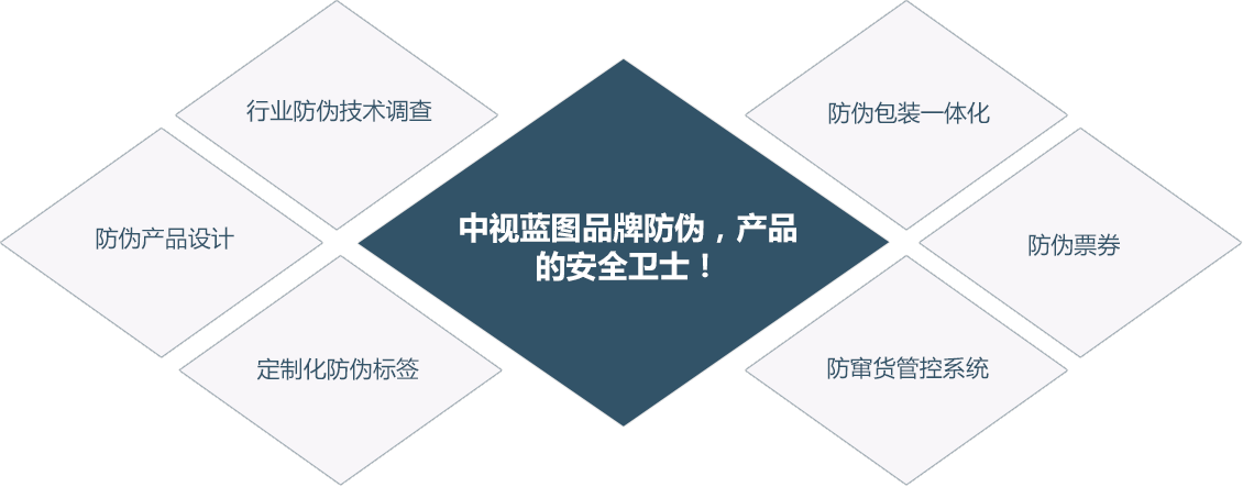 三大防伪应用技术相结合,以赋码技术、防伪标签、防伪证书、票券为载体,基于视觉、听觉、触觉等信息化管理技术验证产品真伪,结合产品防窜货系统方案,全方位管控产品生产、厂库、物流、经销商、终端,为企业产品安全、品质保驾护航。